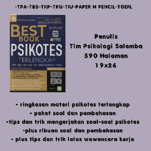 Soal Tiu Psikologi - Best Book Psikotes Terlengkap Tpa Tbs Tkp Tku Tiu Paper N Pencil Toefl Bonus Cd Shopee Indonesia / Kepada saudara (bapak/ibu) telah dibagikan satu lembar soal (sambil ditunjukan oleh tester).